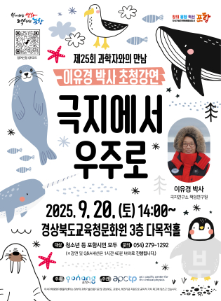 (재)아시아태평양이론물리센터(소장 사사키 미사오, 이하 APCTP)는 오는 9월 20일(토) 오후 2시, 경상북도교육청문화원 다목적홀에서 지역 시민 및 청소년을 대상으로 ‘제25회 과학자와의 만남’ 행사를 개최한다.