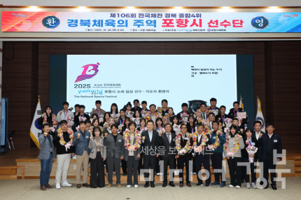 포항시가 제106회 전국체육대회에서 금 16개, 은 13개, 동 10개 등 총 39개의 메달을 획득하며 경북의 종합 4위 달성을 견인한 선수단의 성과를 격려했다. 시는 30일 시청 대회의실에서 선수단과 지도자 등 100여 명이 참석한 가운데 ‘포항시 선수단 환영식’을 열고, 대회 기간 포항의 명예를 빛낸 선수단과 지도자들의 노고를 치하했다. 이날 행사에는 포항시 선수단과 지도자, 포항시체육회 임원 및 종목 단체 관계자 등 100여 명이 참석했으며, 우수 선수에 대한 메달 수여 및 지도자 꽃다발 증정, 기념 촬영 등이 이어졌다. 포항시 선수단은 이번 대회에서 22개 종목 191명이 출전해 육상, 유도, 조정 등 다양한 종목에서 고른 성과를 내며 포항 체육의 저력을 유감없이 발휘했다.
