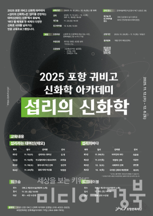 포항문화재단은 올해로 4년째를 맞은 ‘귀비고 신화학 아카데미’를 ‘섭리의 신화학’이라는 새로운 주제로 시민들과 다시 만난다. 이번 아카데미는 여성신화와 해양문화를 중심으로 지역 정체성을 탐색하고, 시민이 주체가 되는 창의적 문화 학습 생태계를 조성하는 데 목표를 두고 있다. 2025 귀비고 신화학 아카데미 ‘섭리의 신화학’은 오는 11월 12일부터 12월 6일까지 문화예술팩토리와 귀비고에서 총 8회의 강의와 2회의 워크숍 및 토크 테이블로 운영된다.