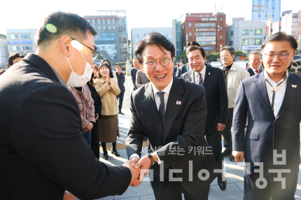 김민석 국무총리가 지난 20일 오전 경주시청을 찾아 2025 APEC 정상회의 준비·운영에 참여한 시청 직원들을 격려하고 주요 부서를 둘러봤다.경주시는 김 총리가 이날 오전 9시 30분께 시청에 도착해, 중국 출장 중인 주낙영 시장을 대신해 송호준 부시장의 영접을 받은 뒤 APEC 현업 부서를 방문해 직원들을 격려했다고 20일 밝혔다.김 총리는 식품위생과, 교통행정과, 도로과, 안전정책과 등을 돌며 정상회의 기간 도시 안전관리와 교통 대책 등에서 직원들이 보여준 노력과 헌신을 듣고 감사의 뜻을 전했다.특히 회의 기간 새벽부터 심야까지 이어진 근무와 돌발 상황 대응을 언급하며 “보이지 않는 곳에서 자리를 지켜준 경주시 공무원 여러분이 APEC 성공의 주역”이라고 강조했다.