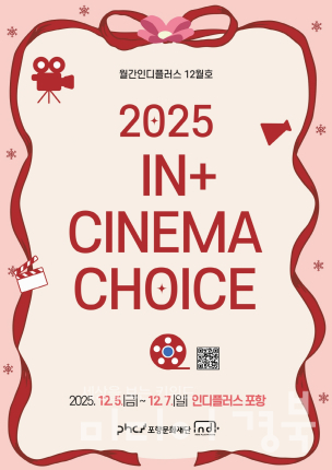 포항문화재단(대표이사 이상모)이 운영하는 독립영화전용관 인디플러스 포항은 오는 5일부터 7일까지 3일간 월간 인디플러스 12월호 ‘2025 In+ CINEMA CHOICE’를 개최한다. 이번 기획전은 2025년 한 해 동안 관객에게 사랑받은 대표 상영작을 결산해 소개하는 연말 특별 프로그램으로 독립영화 3편, 예술영화 3편과 함께 인디플러스 포항 영화동아리 ‘시너지’가 직접 선정한 특별 상영작 3편 등 총 9편을 선보인다. 상영작으로는 ▲고래의 생태와 메시지를 조명한 다큐멘터리 ‘극장판 고래와 나’ ▲상처를 간직한 두 인물의 시간을 따라가는 감성 드라마 ‘봄밤’ ▲아이들의 시선을 통해 경계와 관계를 조명하는 ‘여름이 지나가면’ 등 3편의 독립영화와 ▲아일랜드 소도시에서 펼쳐지는 작은 기적을 그린 ‘이처럼 사소한 것들’ ▲고양이와 다양한 동물 캐릭터가 모험을 펼치는 애니메이션 ‘플로우’ ▲세대를 넘어 사랑 받아온 명작 ‘시네마천국’ 등 3편의 예술영화가 포함된다. 여기에 영화동아리 ‘시너지’가 올해 활동을 통해 직접 큐레이션한 ▲태풍 속 고립된 아이들의 감정과 욕망을 섬세하게 담아낸 청춘 드라마 ‘태풍클럽’ ▲안드로이드 ‘양’의 기억을 따라가는 가족 SF 드라마 ‘애프터 양’ ▲우크라이나 보육원 아이들의 우정과 희망을 담은 다큐멘터리 ‘파편들의 집’ 3편이 특별 상영된다.