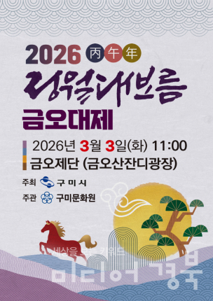 구미시는 2026년 정월대보름을 맞아 3월 3일 오전 11시 금오산 잔디광장 금오제단에서 「2026 병오년 금오대제」를 개최한다. 한 해의 액운을 떨치고 시민의 안녕과 지역 발전을 기원하는 전통 제례 행사다.행사는 전통 살풀이춤과 구미발전춤 공연으로 문을 연다. 이어 엄숙한 절차에 따라 금오대제를 봉행하고, 마을의 평안과 복을 기원하는 지신밟기를 진행한다. 전통 의식과 공연이 어우러져 정월대보름의 의미를 되새기는 시간이 될 전망이다.