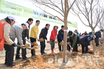 행사는 식전 공연을 시작으로 기념식과 기념 식수, 그룹별 식재 순으로 이뤄졌으며, 특히 산불 피해지 복구의 의지를 다지기 위해 내빈들과 어린이들이 함께한 ‘희망나무 증정 퍼포먼스’로 미래 세대에게 물려줄 푸른 숲의 가치를 다시 한번 강조해 눈길을 끌었다.